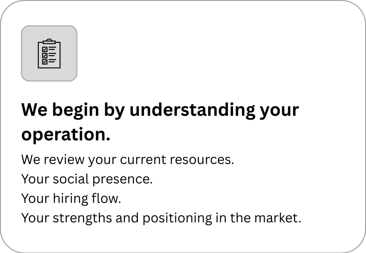 No obligation. If it's not a fit, you still walk away with a clearer picture of your hiring process.